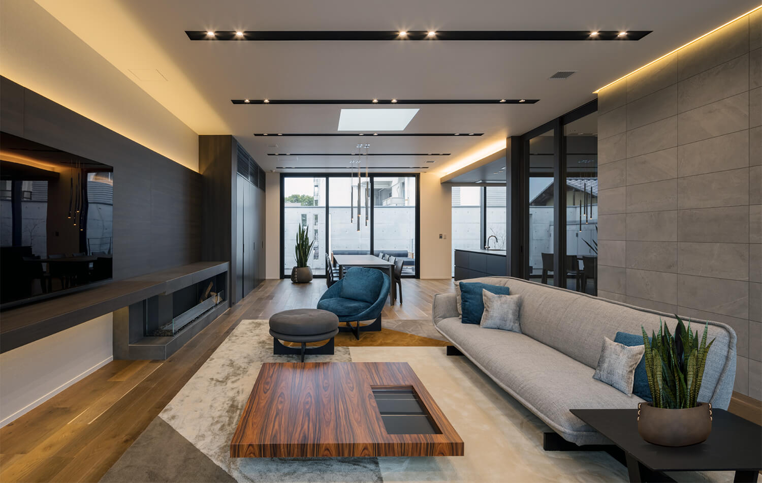 ここからは、設計事務所・アーネストアーキテクツが手掛けたモダンリビングの事例をご紹介します。実際の住まいを通じて、多様なデザインや空間の工夫をご覧ください。
