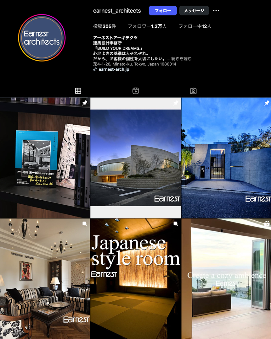 建築設計事務所「アーネストアーキテクツ」の Instagramでは、HPとは違った角度で外観や内装のご紹介をしています。お気に入りのデザインは是非「保存」をして参考にしてみてください。