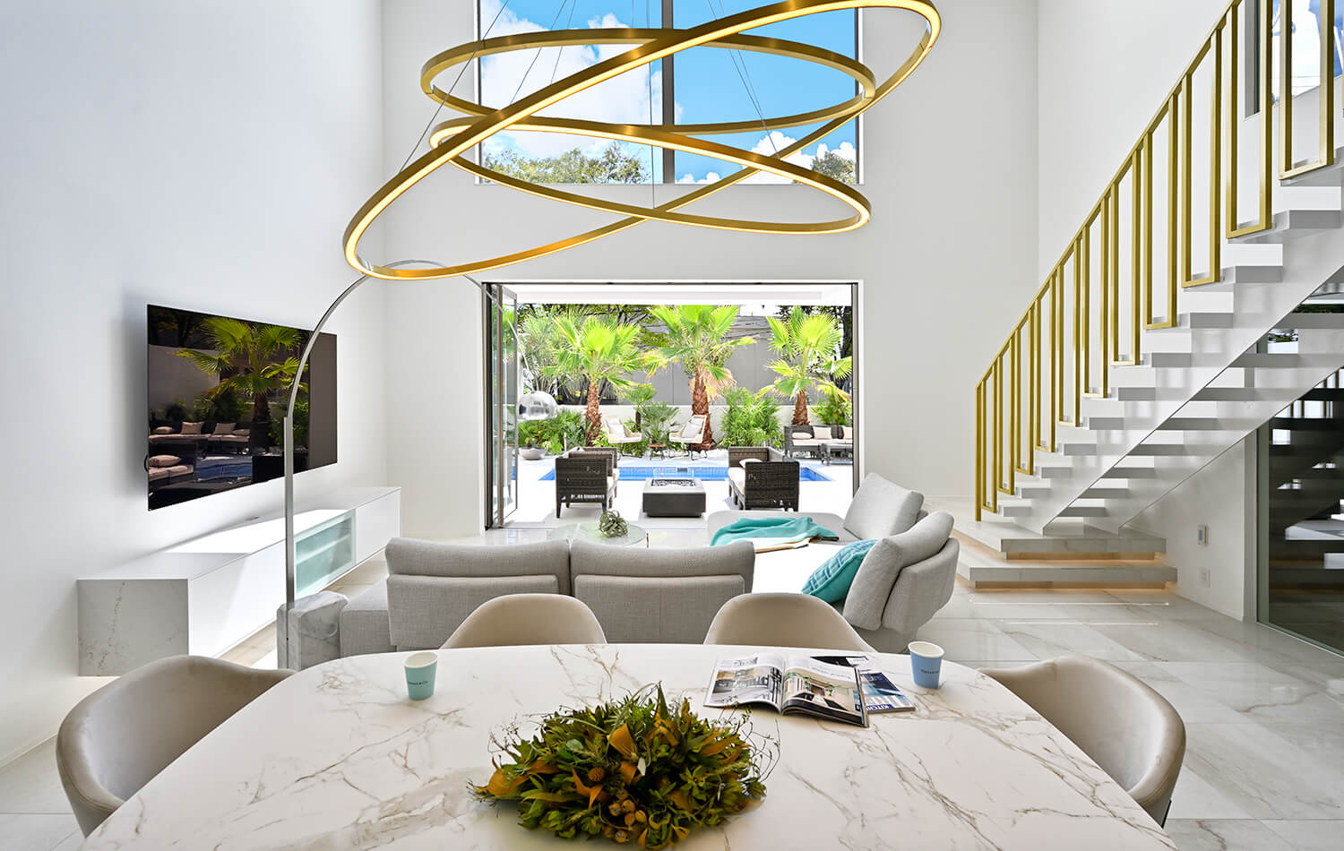 西海岸スタイルを高級住宅で実現する際は、「カジュアルさ」と「上質さ」のバランスが鍵です。なかでもビバリーヒルズの邸宅に見られるような、白を基調に、天然石や木の質感を活かした上質な素材を組み合わせ、開放感とラグジュアリーを両立させています。外観やインテリアのトーンを統一し、開放感やラフさと上質感を両立させることがポイントです。
