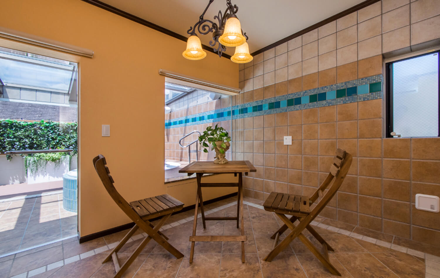 ギリシャや南フランス、スペインの海辺を思わせる地中海風リゾートは、白い壁とブルーのアクセントが特徴的です。開口部や石材の質感を活かし、テラコッタタイルを採り入れることで、上質さの中に明るく温かみのある住まいを演出できます。窓辺の花やカラフルなモザイクタイルなどで彩りを添え、太陽の光をたっぷり取り込むことで、心地よく開放的な住まいに。地中海のリゾートらしい光と風を取り込む設計にすることで、明るく気品あるリゾート空間が実現します。