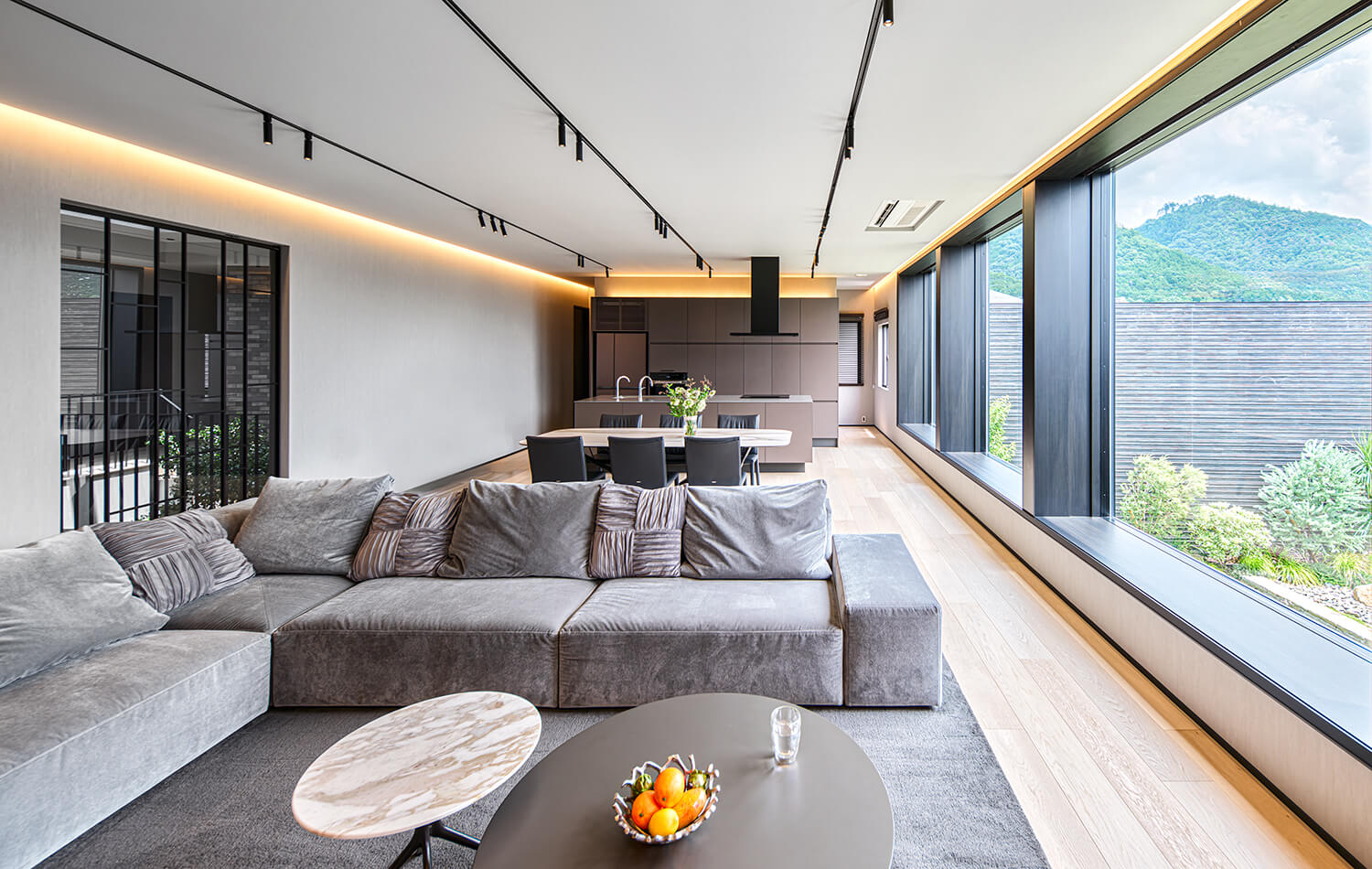 大開口の窓は開放感を生み、光や景色をふんだんに取り込むことで、空間全体を明るく魅力的に演出します。一方で、都市の景観では難しい場合もあります。ピクチャーウィンドウのように美しい景色だけを切り取る窓や、連続するスリット窓を設けることで、リズムや光の流れを意識した繊細な演出も可能です。