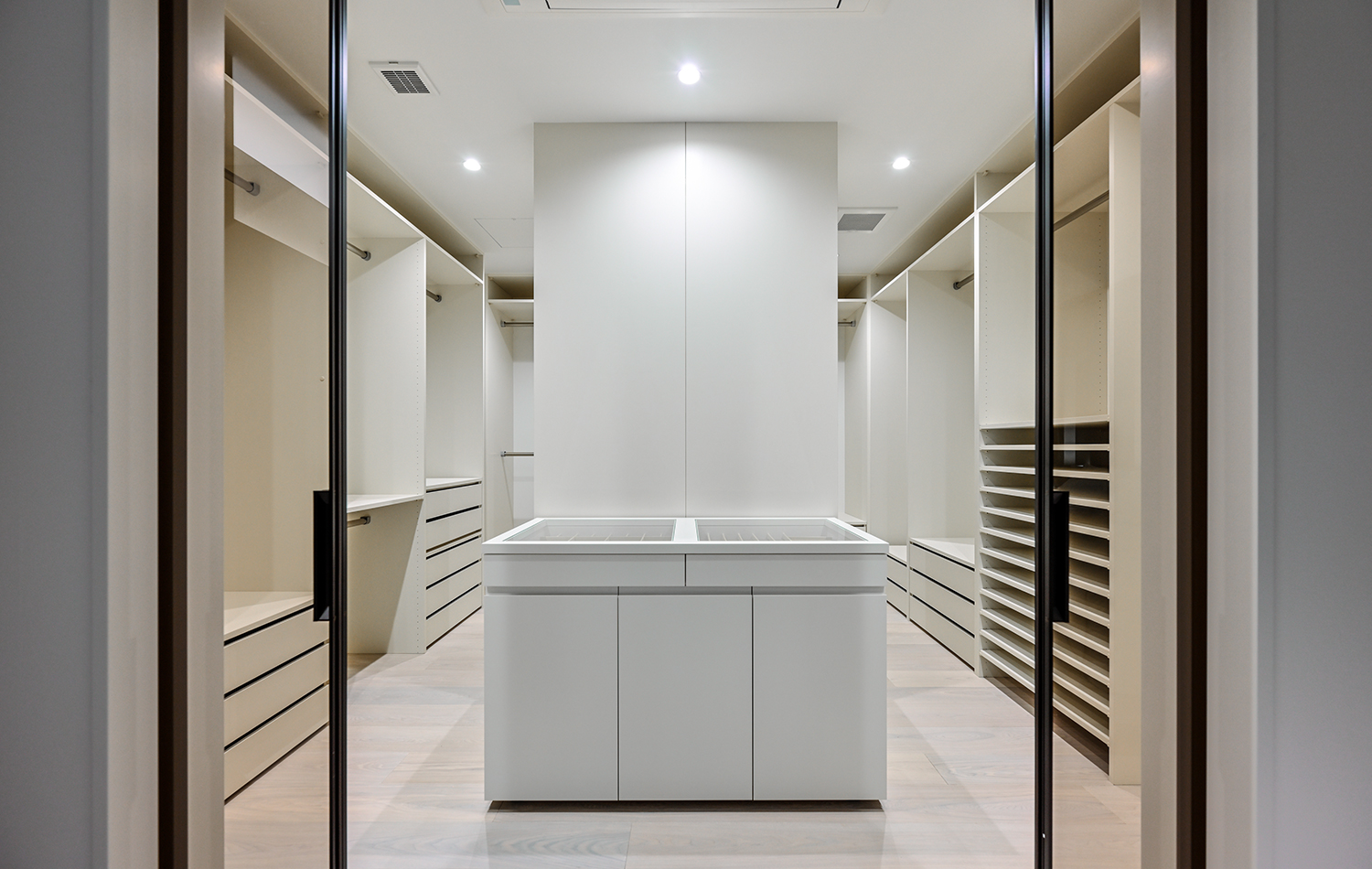 近年では、高級住宅において「見せる収納」が人気を集めています。ガラス扉やライン照明を取り入れた、まるでブティックのような洗練された空間は、単なる収納を超えて、住まいの美意識を表現する要素としても注目されています。