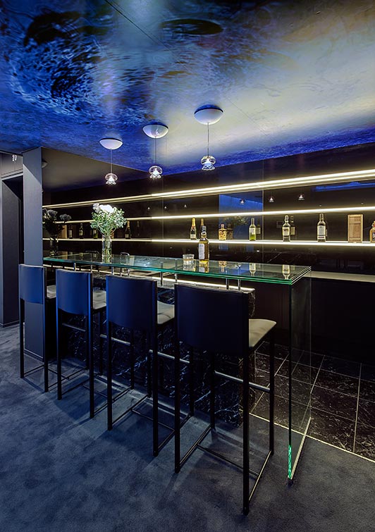 ・床際や壁面にライン照明を仕込み、奥行きを強調する