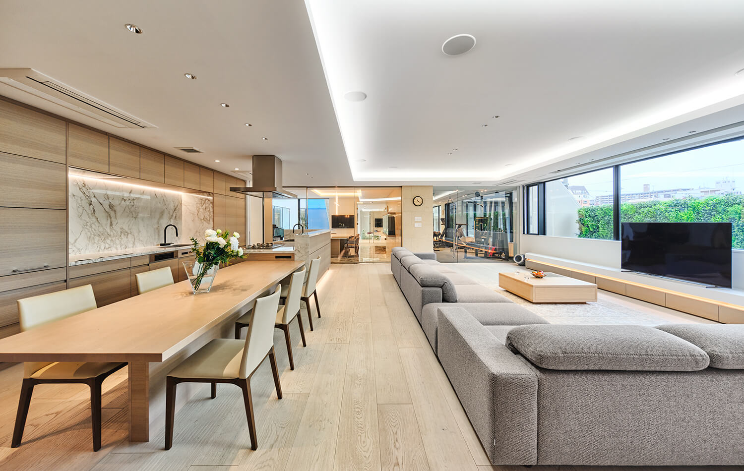 優雅で快適な高級住宅らしいリビングを実現するには、見た目の美しさだけではなく、暮らしの質を高める工夫を行うことが大切です。ゾーニングやフォーカルポイントの設計、素材や配色、照明の使い方に至るまで、空間全体にこだわりと品格が求められます。