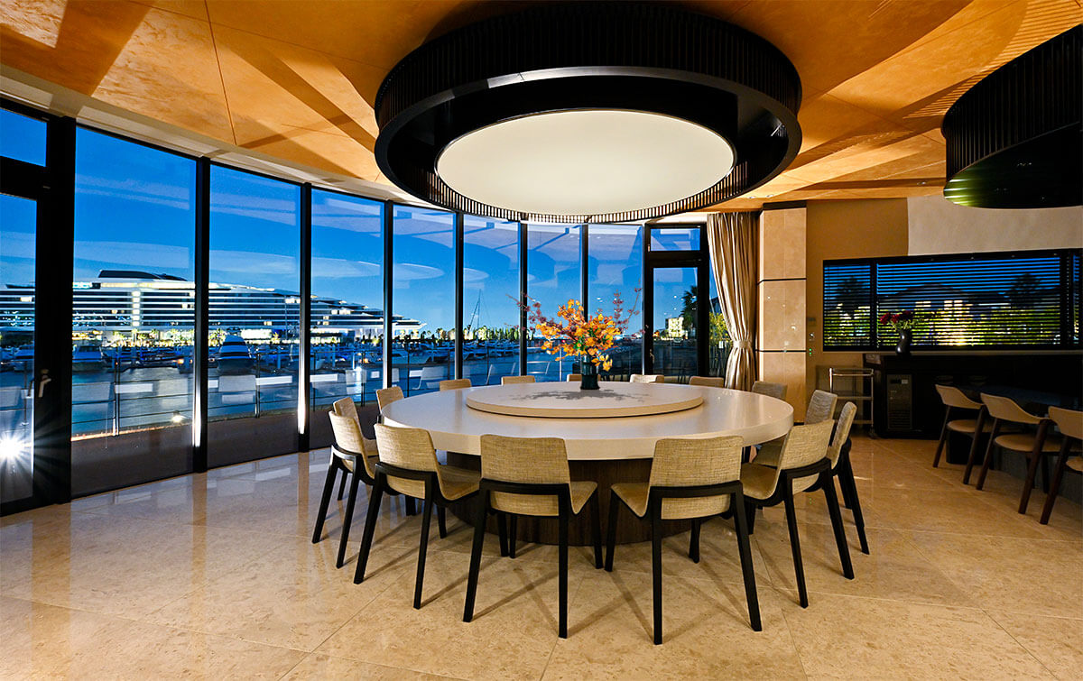 白を基調とした爽やかでモダンな住まいに、愛車が映えるガレージハウスの要素を融合。エントランスから回廊、LDKへと続く動線上では、常に愛車を眺められる設計とし、ガレージはレセプションルームとしても活用可能です。LDKは全開口のサッシを採用し、プールのあるテラスと一体化。主寝室からもこのリゾートのような風景を楽しめます。
