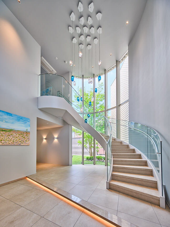 高級住宅では階段を「造形美」として捉え、住まいの象徴として昇華させることが理想です。