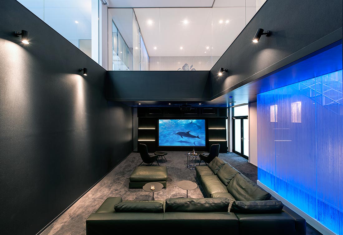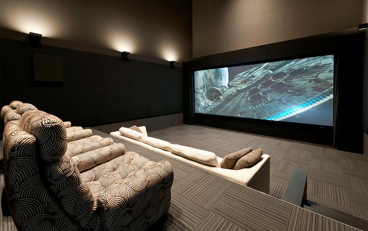 シアタールームは、高級住宅におけるエンターテインメント空間の代表格です。大画面スクリーンと高品質な音響設備を備え、遮音・防振・遮光性能を高めることで、外部環境に左右されない没入感を実現します。