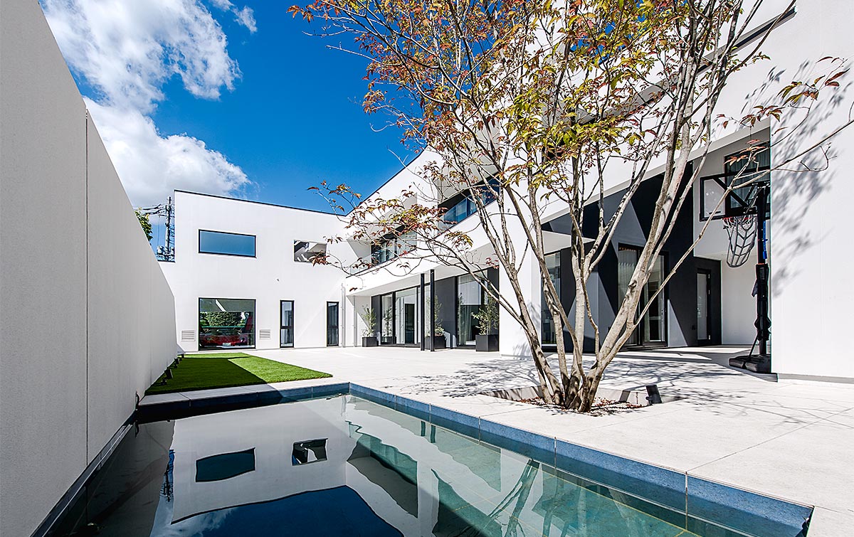 コートハウスは、建物や塀で囲まれた中庭を中心に据えた住まいで、外部の視線を遮りながら自然光や風を取り込める都市型邸宅に適したスタイルです。アーネストアーキテクツでは、中庭と室内を一体的にデザインし、曲線的な塀やガラススリットで開放感を演出。水盤や噴水などの演出を取り入れることで、静謐で上質な空間を生み出します。プライバシーと快適性を両立したコートハウスは、松濤のような高級住宅地にふさわしい住まいの形です。