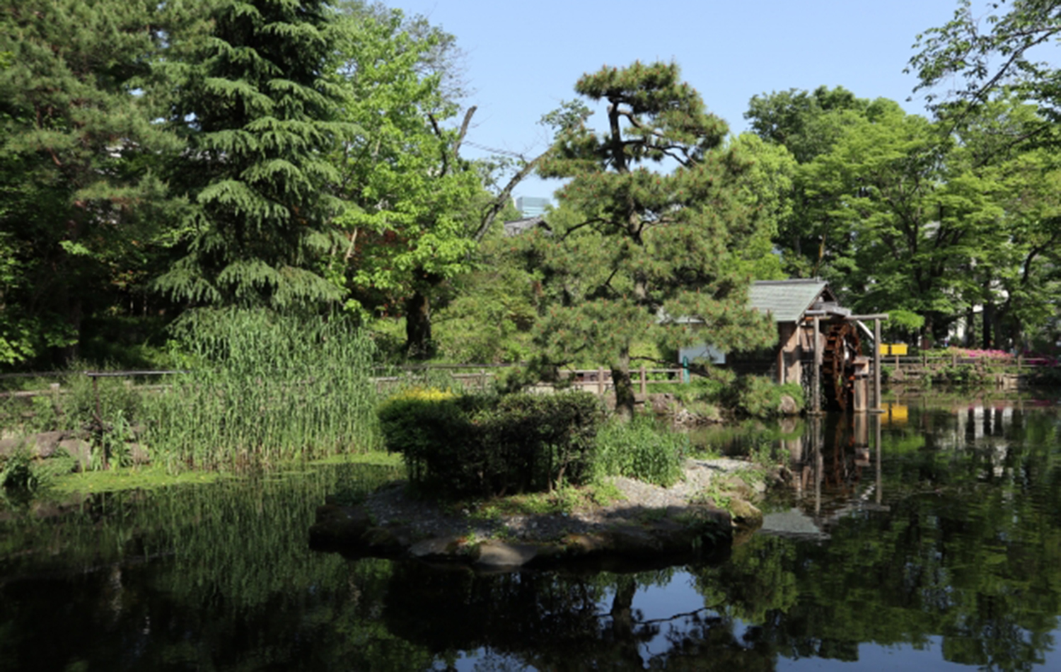 また、自然環境にも恵まれており、松濤2丁目には水車と池を備えた「鍋島松濤公園」が整備されています。園内は豊かな緑と草花に包まれ、湧水が流れる池のほとりでゆったりとした時間を過ごせます。