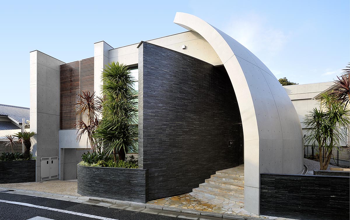 曲線がもたらす連続性は、空間を緩やかにつなぎ、日常の動線や視線に心地よい流れを生み出します。大阪の高級住宅街にふさわしい、穏やかで品格ある佇まいを備えた住まいのかたちです。