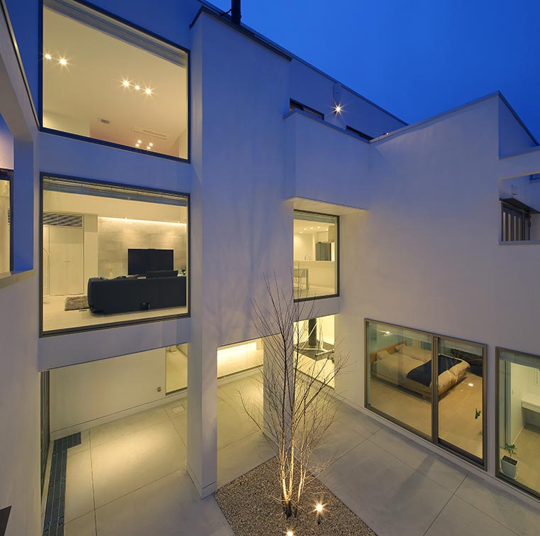 中庭に差し込む光の移ろいや、植栽の変化が日常の風景となり、都市にいながら自然を身近に感じる暮らしが成立します。大阪・北摂エリアの成熟した住宅地において、プライバシーと開放感を両立させるコートハウスは、高級住宅街にふさわしい住まいの選択肢です。